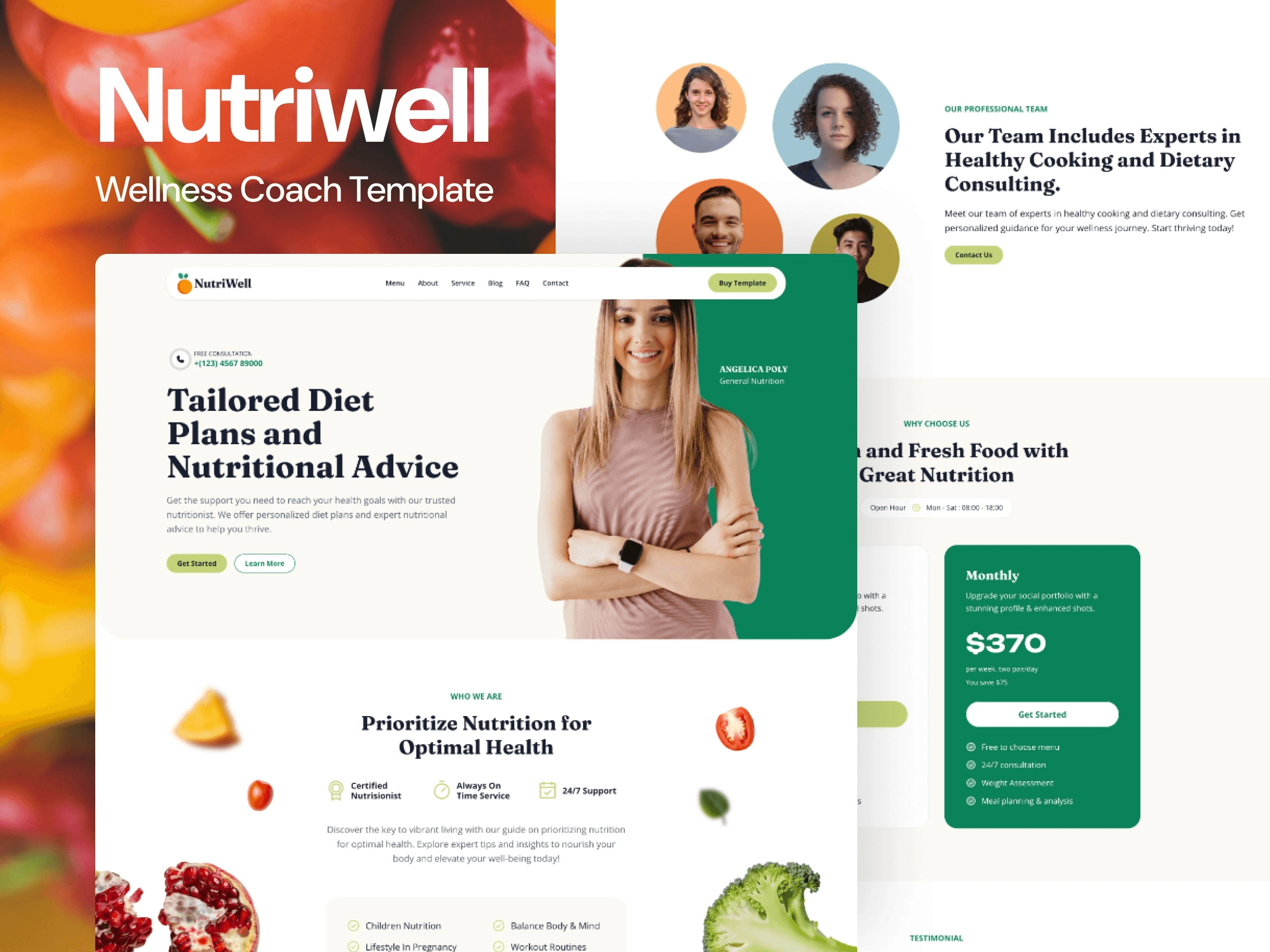 NutriWell: $49, vibrant design for nutrition coaches with meal plan sections.