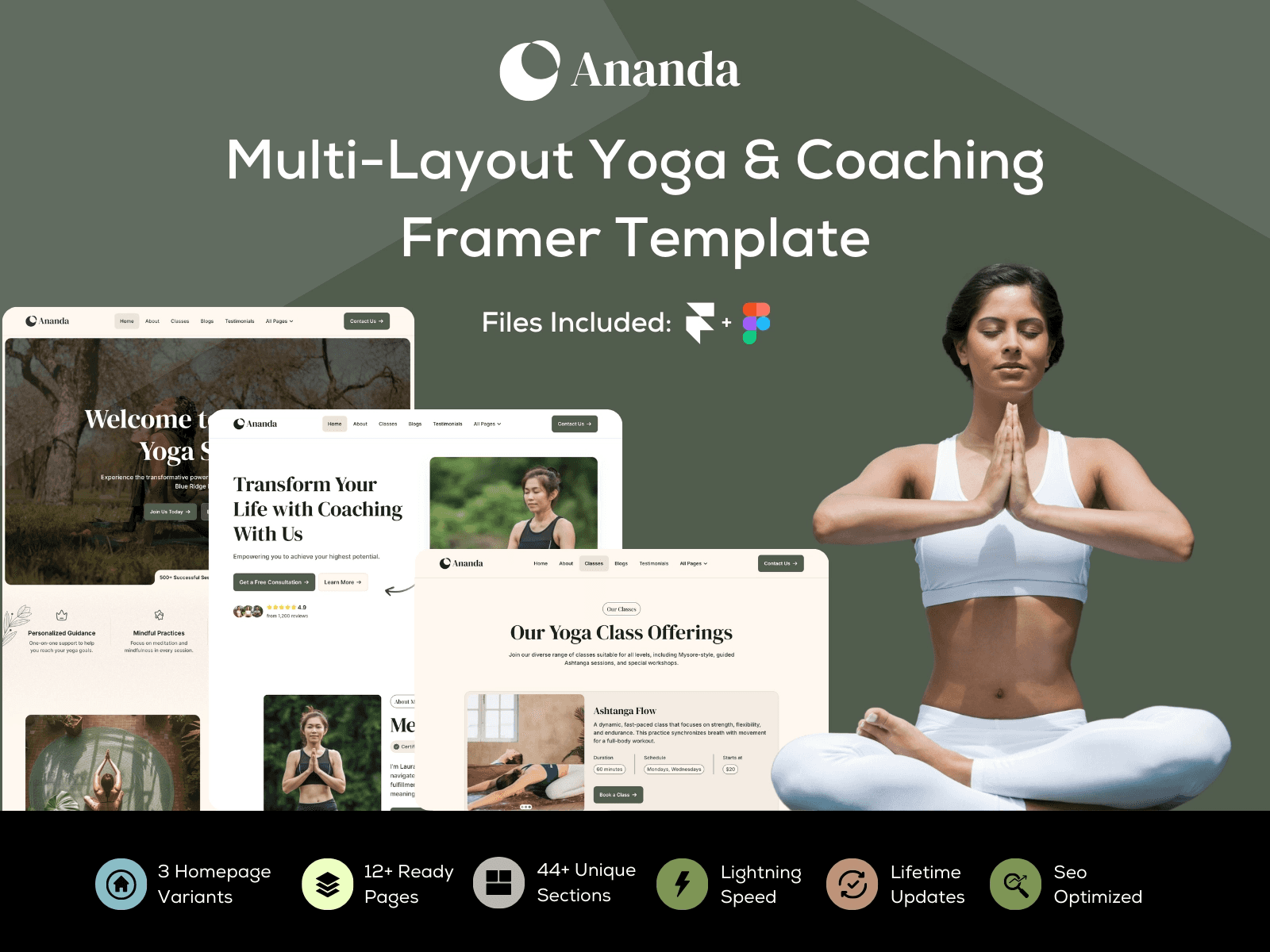 Ananda is a sleek, minimalist template designed specifically for yoga, meditation, and wellness coaching. With over 5,100 views on the Framer Marketplace, it’s become a favorite for coaches looking to create a calm and inviting online presence. Priced at $69 as a one-time purchase, it includes lifetime free updates and support, along with a design system tailored to the wellness industry.